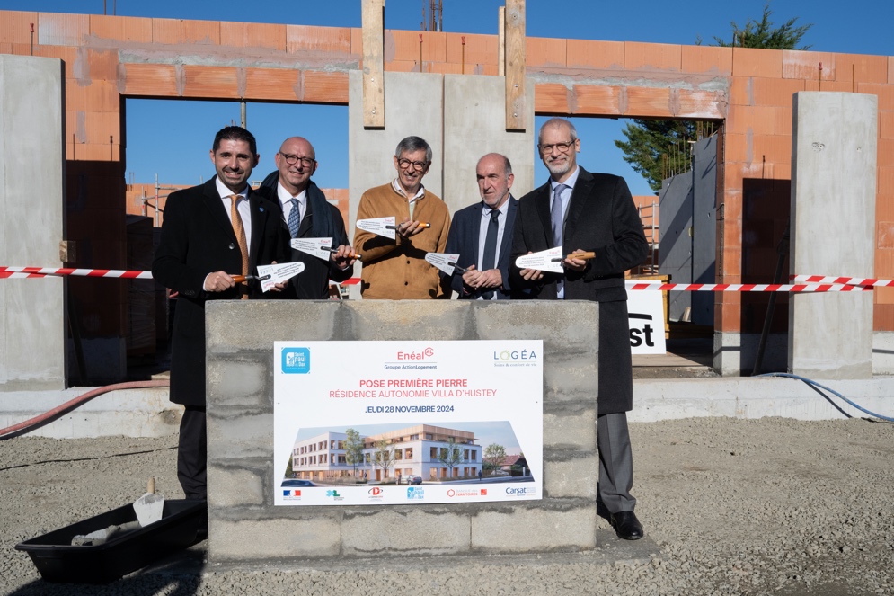 La foncière médico-sociale du Groupe Action Logement, ÉNÉAL et l’Association LOGÉA, structure privée à but non lucratif, gestionnaire d’établissements médico-sociaux, deux acteurs majeurs du secteur médico-social, sont fiers d’annoncer la pose de la première pierre de la Résidence Autonomie Villa d’Hustey. Ce projet novateur, situé avenue du Maréchal Foch, offre un hébergement sécurisé et adapté aux personnes de plus de 60 ans, autonomes ou semi-valides dans un cadre moderne, proche du centre-ville et des commodités.