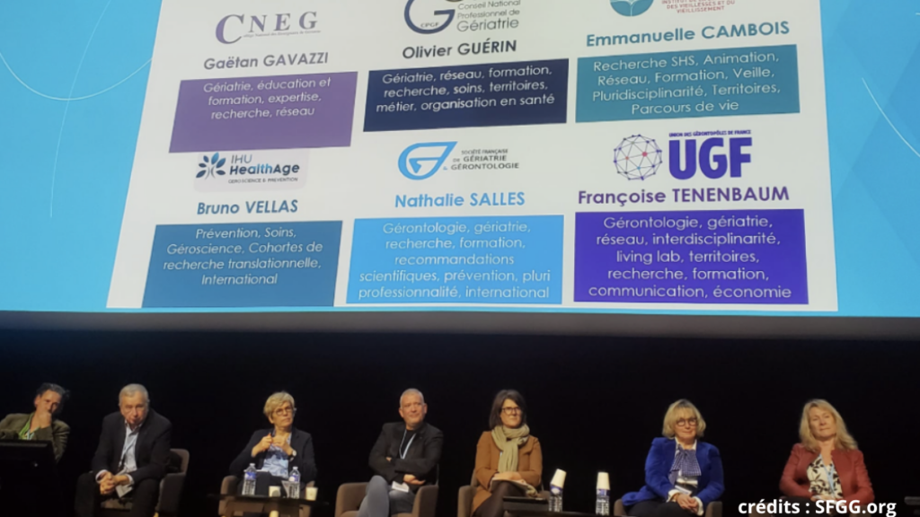 Cette vision commune est partagée depuis des années par les fédérations gériatriques et gérontologiques est de rassembler les forces vives de la discipline au sein d’une seule et même entité. C’est désormais chose faite, suite à ce congrès, et grâce à la collaboration entre la SFGG, l’Union des Gérontopôles de France (UGF), l’Institut de la longévité, des vieillesses et du vieillissement (ILVV), l’IHU HealthAge, le Collège National des Enseignants de Gériatrie (CNEG), et le Conseil National Professionnel de Gériatrie.