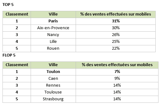 La capitale enregistre en effet deux fois plus de commandes via tablette ou smartphone qu’à Marseille (16%) et jusqu’à 4,4 fois plus qu’à Toulon (7%).