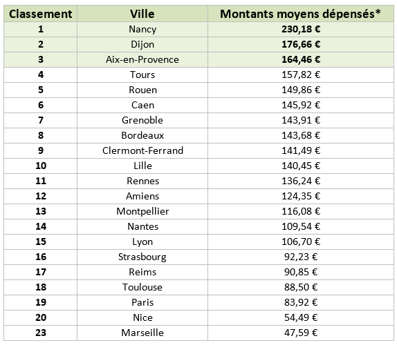 Les habitants des grandes agglomérations dépensent peu, Lyon est à la 15ème place du classement et Paris à la 19ème place.