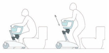 S’asseoir ou se lever sont des actions difficiles pour les personnes âgées facilitées ici par un système motorisé. Adjusto permet d’aller aux toilettes, de s’asseoir dans un fauteuil sans l’aide d’une personne, ce qui facilite les tâches pour la famille et les infirmières.