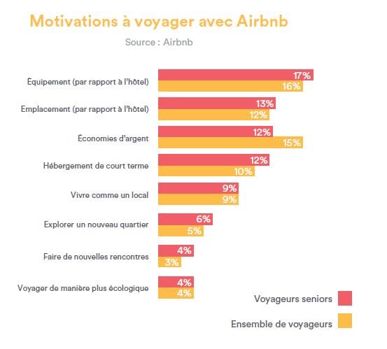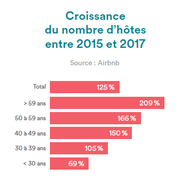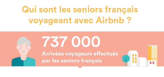 Fin 2017, 51 343 hôtes seniors (âgés de plus de 60 ans) offraient un logement sur Airbnb, soit 15 % du total des hôtes. Parallèlement, 737 000 seniors français avaient voyagé avec Airbnb.