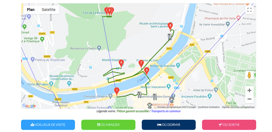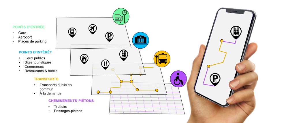 En réponse à ces différents besoins, la start-up propose deux solutions : une plateforme de mobilité servicielle pour la ville et un générateur d’itinéraires touristiques accessibles pour la métropole et l’office du tourisme.