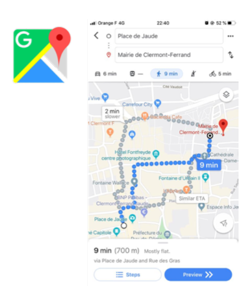 - Un calculateur d’itinéraire (GPS) personnalisable en fonction de 3 critères : du profil, du niveau de mobilité de l’habitant et son mode de transport souhaité (à pied, en transport en commun, à la demande, en voiture…).