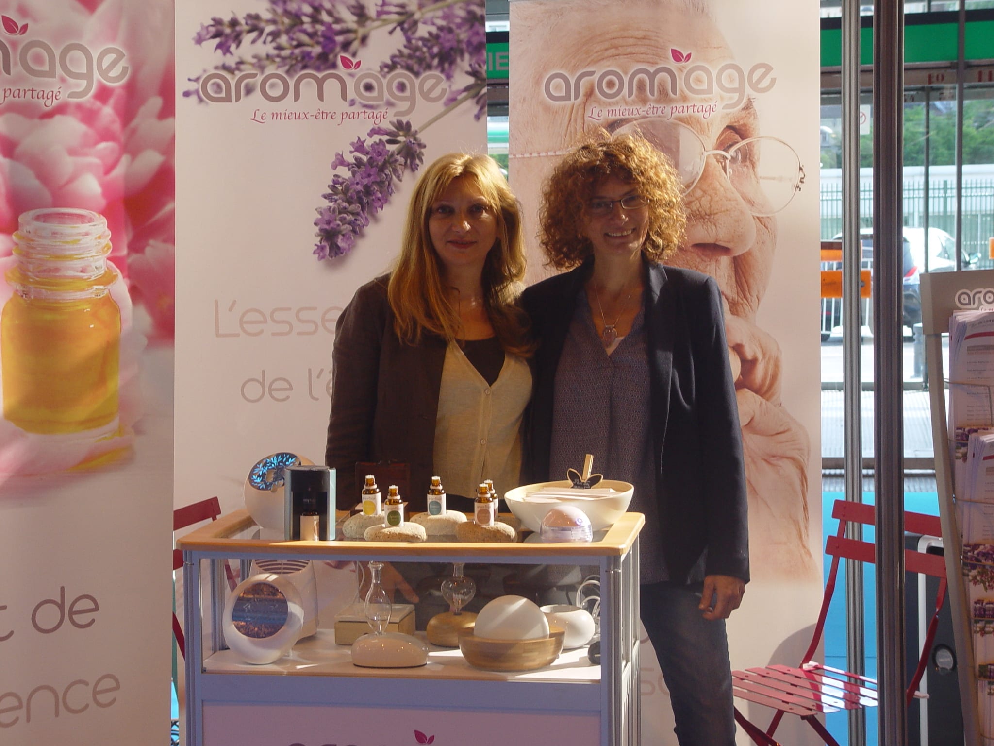 Stand aromage 2Aromage propose des formations aux Soins Sénescence, des protocoles aromatiques créés et formalisés spécifiquement pour les centres de soins et d’hébergement. «Nous avons fusionné nos savoirs avec Colette Lacaille, une personne de même sensibilité qui a évolué entre biochimie, réseau de santé social, services à domicile et direction d’établissement», ajoute Sylvie. «A mon arrivée dans la profession, j’ai fait un constat assez alarmant sur le quotidien des résidents, sur leur souffrance psychique et sur une médicalisation qui leur ôtait toute envie de vivre», poursuit la responsable EHPAD.