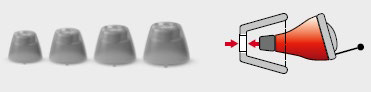 Click Sleeves™ : différentes tailles de sleeves, version fermée ou ouverte, afin d’être adapté à la plupart des anatomies et des besoins auditifs.