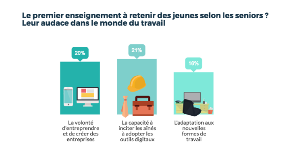 En quête d’autonomie et de flexibilité, les Millenials (jeunes) bousculent les codes du travail, cherchent à innover et ne manquent pas d’audace pour leur développement professionnel : une attitude reconnue comme une force par les seniors.