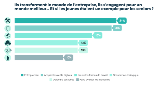 Et si les seniors voient comme un atout cette capacité à transformer le monde professionnel, ils retiennent également de ces jeunes de 18-30 ans leur engagement pour le monde de demain :