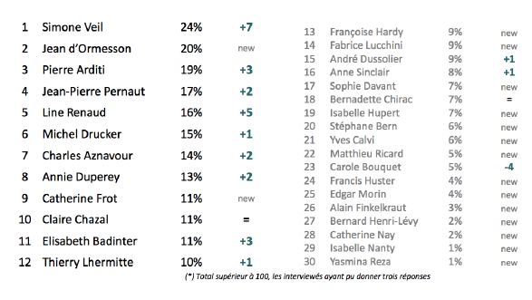 Ainsi, on apprend que pour près d’une personne âgée sur quatre, Simone Veil est la personnalité qui valorise le plus leur image.