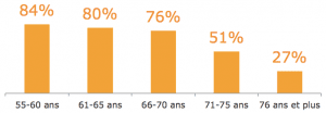 les tranches d’âge au sein des 55 ans et +, signant ici sa formidable contribution à la vie sociale de ces générations.
