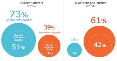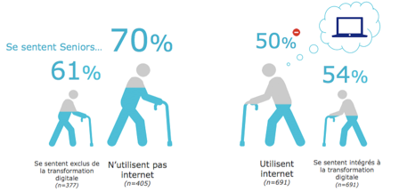 De façon globale, on observe qu’Internet fonctionne comme un élixir de jouvence. Lorsque les seniors se sentent bien intégrés à la transformation digitale, lorsqu’ils pratiquent Internet, ils sont davantage satisfaits de leur propre vie, davantage satisfaits de l’image qu‘ils lisent dans le regard des autres et surtout ils se sentent… beaucoup moins senior !
