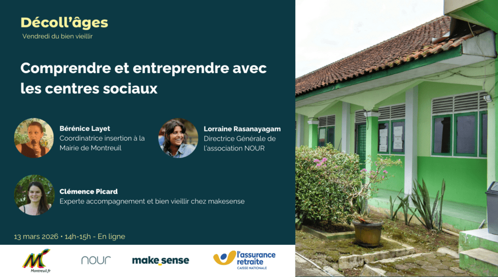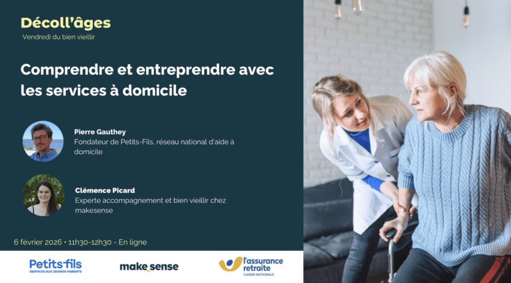 Services d’aide à domicile, centres sociaux, clubs séniors : pour les entrepreneurs et entrepreneuses du bien-vieillir, les partenariats sont souvent clés… mais pas toujours simples à activer. Deux webinaires organisés par makesense proposent de décrypter ces écosystèmes et de partager des retours d’expérience concrets pour collaborer plus efficacement.