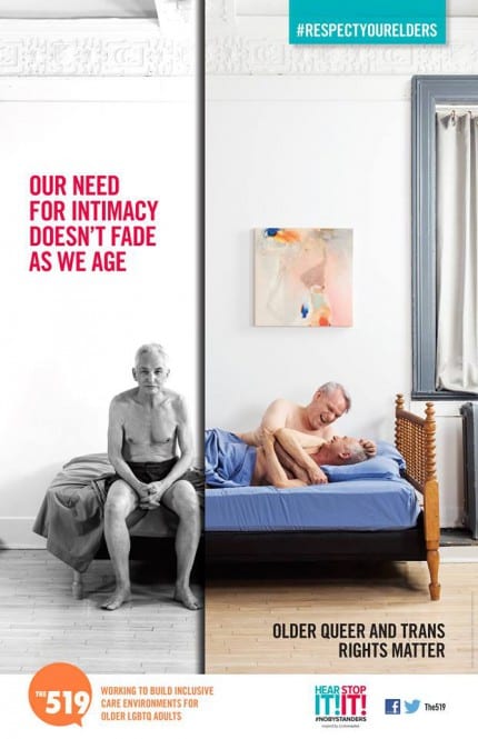 Au Canada, l’organisation LGBTQ The 519 a lancé une campagne en faveur des seniors LGBTQ (Lesbienne Gay Bissexuel Transsexuel et Queer) avec comme slogan :