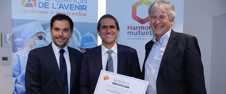 d’Harmonie Mutuelle, et Dominique Letourneau, Président du directoire de la Fondation de l’Avenir, ont remis le « Prix Harmonie Mutuelle Alzheimer » qui soutient financièrement les travaux d’un chercheur