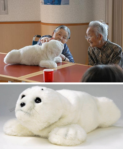 Dans un tout ordre d’idée, les japonais ont mis au point un ravissant bébé phoque, plus vrai que nature mais bourré de capteurs et de technologies diverses : lorsqu’on le caresse, il réagit, ses yeux brillent, il bouge la tête, se redresse en poussant de petits cris….