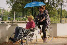 Malgré leur différence d’âge, Daniel et Taïna partagent le même sens de l’humour. Les deux comparses évoquent les voyages, la gymnastique, le premier avril et partent se promener au bord de la Marne en vélofauteuil roulant.