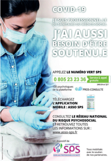 Durant cette crise sanitaire du Covid-19, l’Association SPS – Soins aux Professionnels en Santé – et la Fondation Apicil se mobilisent pour faire connaître le dispositif d’accompagnement psychologique dédié à tous les soignants du sanitaire et du médico-social.