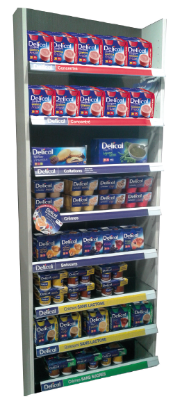 - des gammes claires et visuelles en linéaire, pour faciliter le choix des produits (bénéfices santé, sélection des parfums et textures qui conviennent le mieux à chaque patient).