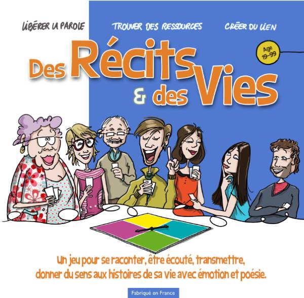 Commercialisé à partir de février 2017, « Des récits de vie » est un jeu qui repose sur le langage et qui vise à favoriser l’expression de soi. Il se compose d’un plateau, d’une flèche et d’un jeu de cartes. Accessible à tous les publics, y compris aux personnes âgées, il encourage les participants à s’exprimer sur leur histoire avec émotion et poésie et a été testé par plusieurs aînés en établissement.