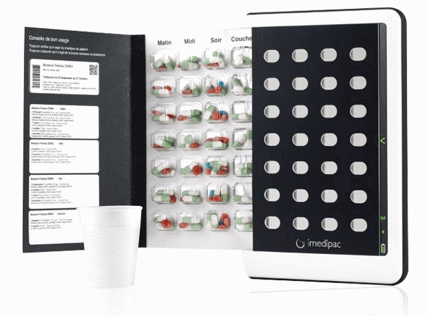 Les piluliers connectés sont également en pleine expansion, à l’exemple d’ IMédipac ou de MedSecure, deux sociétéss françaises qui proposent des piluliers connectés intelligents, permettant de lancer un signal en cas d’oubli de la prise d’un médicament ou d’erreur de prise. Ces piluliers peuvent également lancer une alerte vers une personnes tierce (aidant, médecin, pharmacien, infirmière … )