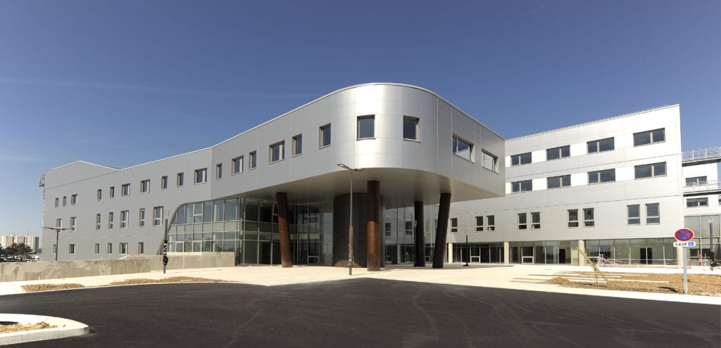 Architecture et comporte une façade forte en proue de l’Hôpital, selon une conception bio-climatique