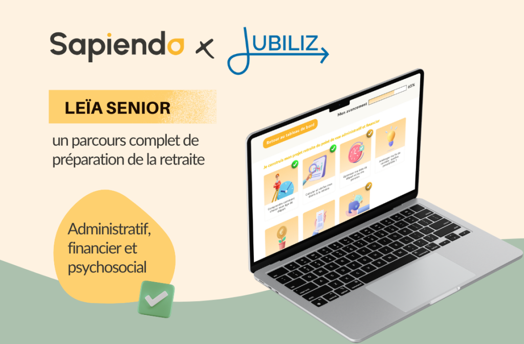 En partenariat avec Sapiendo, acteur reconnu de la retraite, Jubiliz a lancé Léia Senior : une plateforme numérique pensée pour guider les futurs retraités à travers les complexités administratives et les décisions financières. Intuitive, complète, elle propose aussi des modules pour aborder des sujets plus intimes, tels que le bien-être psychologique ou les projets de vie.
