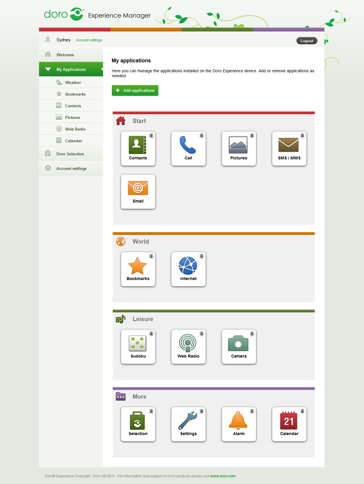 Alors que Doro a fait l’acquisition de la société Prylos, spécialisée dans les applications mobiles pour personnes âgées, en Juillet 2011, le fabricant suédois annonce Doro Experience® et a pour ambition d’en faire la référence des applications et services pour les seniors. Cette offre est disponible pour des terminaux Android et Windows.