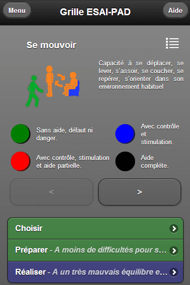 L’application comporte également une méthode simple et précise pour identifier les capacités et les besoins en aides et en soins qui préserveront l’autonomie et la sécurité dans les actes de la vie quotidienne.