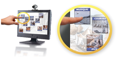Choisir son application, surfer sur internet, zoomer sur une page pour la rendre plus lisible, regarder ses photos, il suffit de pointer du doigt sur l’écran. Pour envoyer son courrier, il suffit d’enregistrer un vidéo mail, pour prendre connaissance des nouveaux mails, une pression du doigt suffit à se les faire lire par l’ordinateur, pour voir un DVD ,avec une pression du doigt on ouvre l’icône et on a directement accès au film désiré, les jeux proposés sont aussi bien ludiques que des jeux de mémoire.