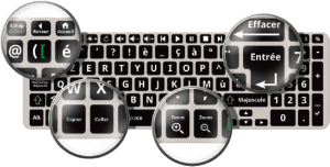 Doro-PC-clavierDoro EasyPC est équipé d’un écran tactile qui permet de sélectionner directement certaines applications, ou bien par exemple des images ou articles que l’on peut découper et envoyer par mail. En plus de l’écran tactile Doro EasyPC est équipé d’un clavier simplifié, avec un seul caractère par touche et des raccourcis pratiques tels que les touches « copier », « coller », ou encore « zoom ».