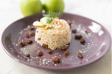 Un taboulé aux herbes folles- Du saumon, riz coco gingembre et raisins de Corinthe