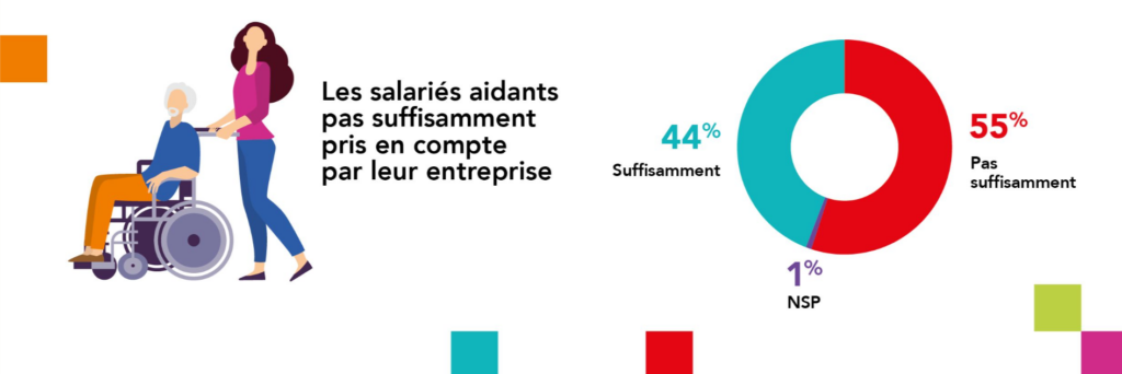 Selon la DREES, près de 25% des Français âgés de 55 à 64 ans sont des aidants. Leur intégration au sein des entreprises apparaît donc comme un levier important pour favoriser l’inclusion de tous. Or, sur ce point, les salariés sont assez critiques avec 55% d’entre eux qui estiment qu’ils ne sont pas suffisamment pris en compte par leur entreprise. Ce sentiment est plus fortement partagé par les salariés seniors (64% des 50 ans et plus contre 52% des 35-49 ans et 48 % des moins de 35 ans).