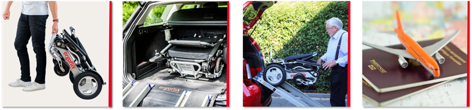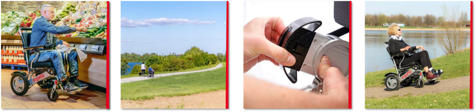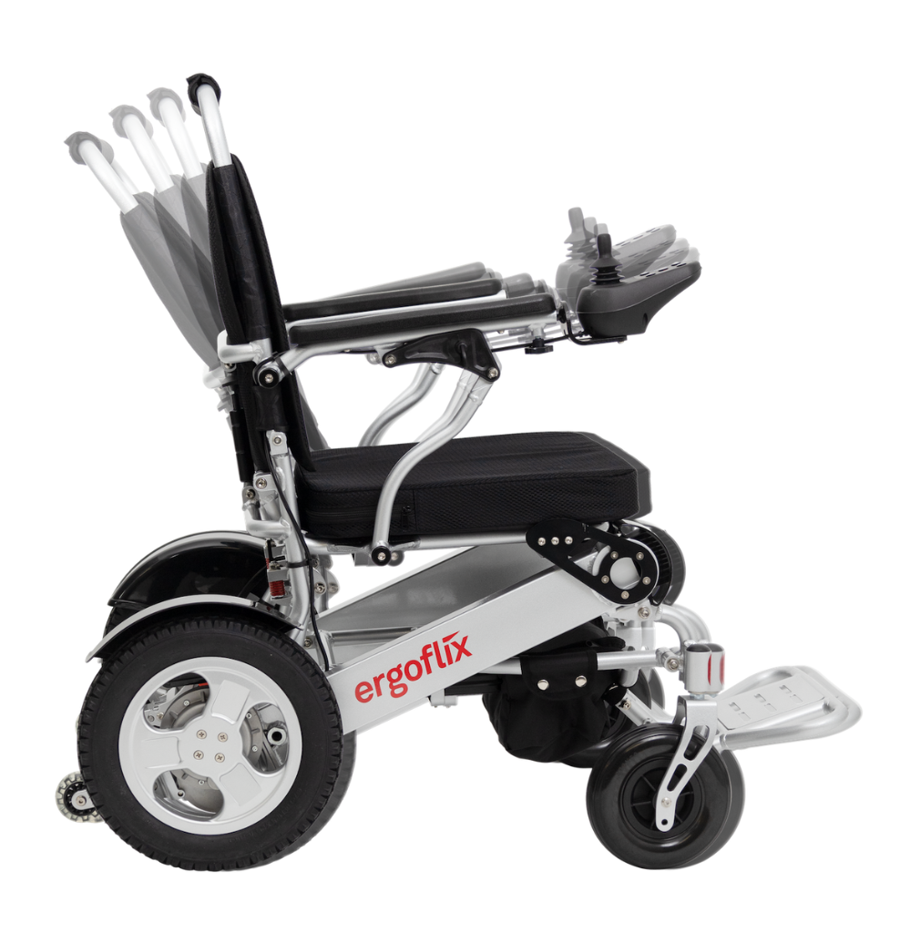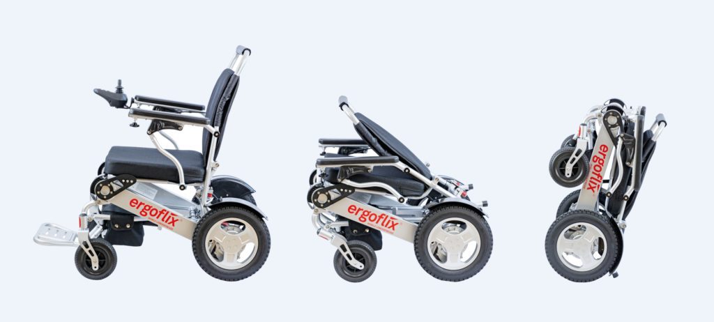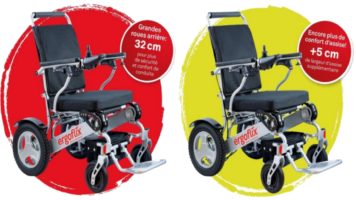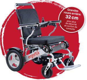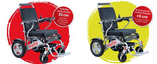 La marque propose deux modèles de fauteuils roulants électriques pliables : l’ergoflix L et sa version déclinée l’ergoflix L plus qui dispose d’un espace d’assise plus large. Ces fauteuils se plient en 3 secondes, ce qui les rend particulièrement faciles à transporter. Leur moteur permet à l’utilisateur de se déplacer sans effort et de franchir avec aisance des pentes allant jusqu’à 12°. Enfin, les fauteuils ergoflix ont un design épuré et compact qui les rend intuitifs et faciles à utiliser dès la première prise en main.