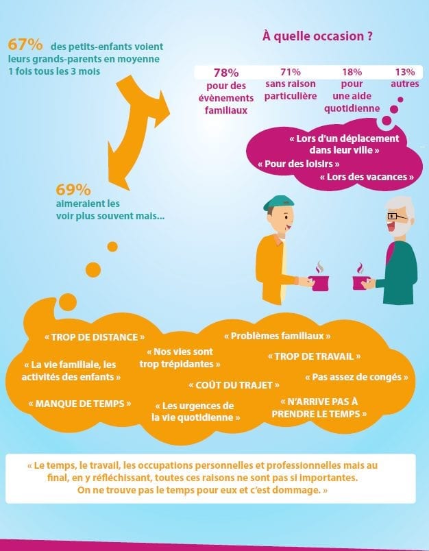 Après avoir mené en 2017 une étude auprès des petits-enfants, l’Association Partager Pour Mieux Vieillir revient avec une nouvelle infographie dédiée cette fois-ci au regard des grands-parents face à la relation entretenue avec leurs petits-enfants.