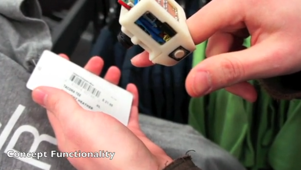 Encore au stade de prototype, cet accessoire se présente sous la forme d’une grosse bague équipée d’une caméra. Il suffit que la personne pointe du doigt l’objet ou l’obstacle nécessitant une information, clique deux fois sur le bouton situé sur le côté de la bague puis donne un ordre à haute voix – le mot « couleur », par exemple. Ces données sont aussitôt transmises par bluetooth à un smartphone relié à la bague, puis les informations demandées sont communiquées simultanément sur l’écran du téléphone et en format audio.