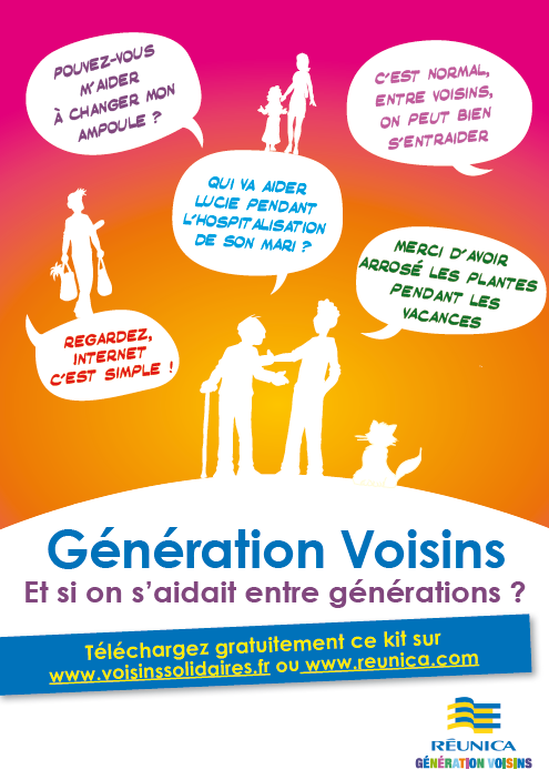 Réunica et Voisins Solidaires ont lancé un programme d’encouragement au lien social entre voisins en 2013, qui se poursuit en 2014, L’objectif de ce programme est de permettre aux personnes âgées de demeurer le plus longtemps possible à leur domicile.