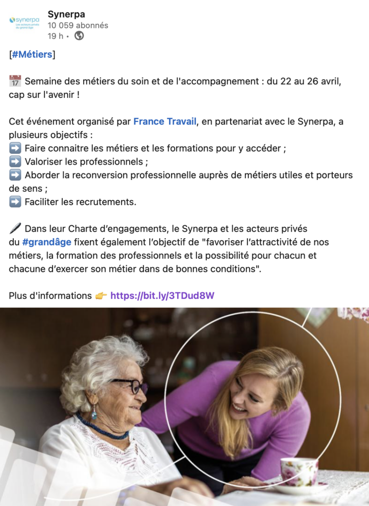 - La valorisation des recrutements : dans un secteur qui manque cruellement de personnel, France Travail tente de faciliter au maximum le recrutement dans les métiers du soin et de l’accompagnement en organisant des job dating et en mettant en place un forum de recrutement en ligne lors de cette semaine spéciale.