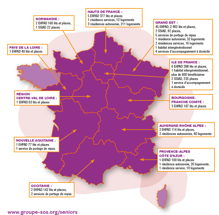 Ces 3 établissements font désormais partie des 100 établissements et services gérés par le GROUPE SOS Seniors, soit désormais 7 résidences autonomie pour un total de 303 places. GROUPE SOS Seniors comprend également 69 EHPAD pour plus de 3 800 places, 5 services de soins à domicile, 5 services d’accompagnement des Seniors à domicile (Seniors Connect), 2 associations d’habitat intergénérationnel, 4 résidences services et 8 activités de portage de repas … Tous ces établissements favorisent la mixité sociale et proposent des prestations de qualité pour tous (tant au niveau de l’hôtellerie, des soins, de l’animation, de la blanchisserie que de la restauration).