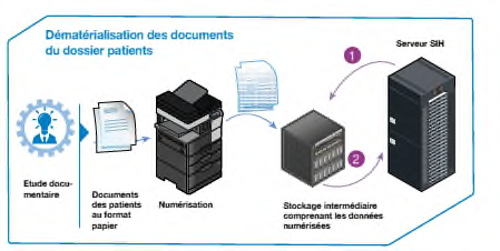 - la dématérialisation des documents stratégiques (dossiers patients, factures fournisseurs)