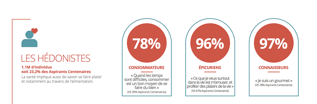 - Ils pensent que consommer est un bon moyen de se faire du bien (78% VS 30% des Aspirants Centenaires)