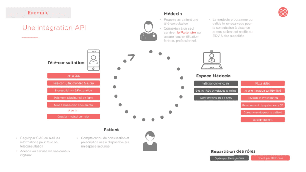 La jeune pousse proposait déjà des intégrations selon les besoins des professionnels, en marque grise, marque blanche ou via le développement d’application dédiée. Désormais elle met également à la disposition de partenaires techniques sa solution par le biais d’API et de SDK. La solution s’appelle Hellocare PLATFORM et permet de gagner un temps précieux aux éditeurs qui veulent proposer la télémédecine dans leurs offres.