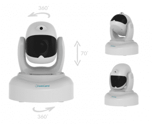 d’une caméra 1080p à vision nocturne pour filmer à 360° son intérieur et voir les images en direct sur son smartphone ou sa tablette, il est également possible de prendre des photos- D’un micro deux voies audio qui permet, toujours via l’application, de communiquer à distance avec ses proches;
