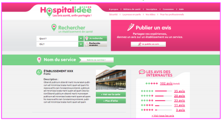 Hospitalidée® recueille, organise et structure les avis des patients sur les différents établissements qu’ils fréquentent ou qu’ils ont fréquenté.