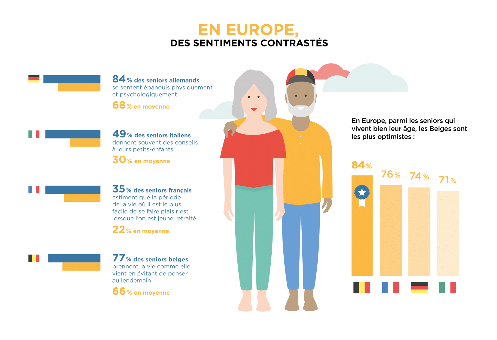 Suite a la publication des résultat de son deuxième Baromètre européen du bien vieillir, Korian a réalité une infographie reprenant les principaux enseignement de cette enquête réalisée auprès de 8000 personnes dans 4 pays.