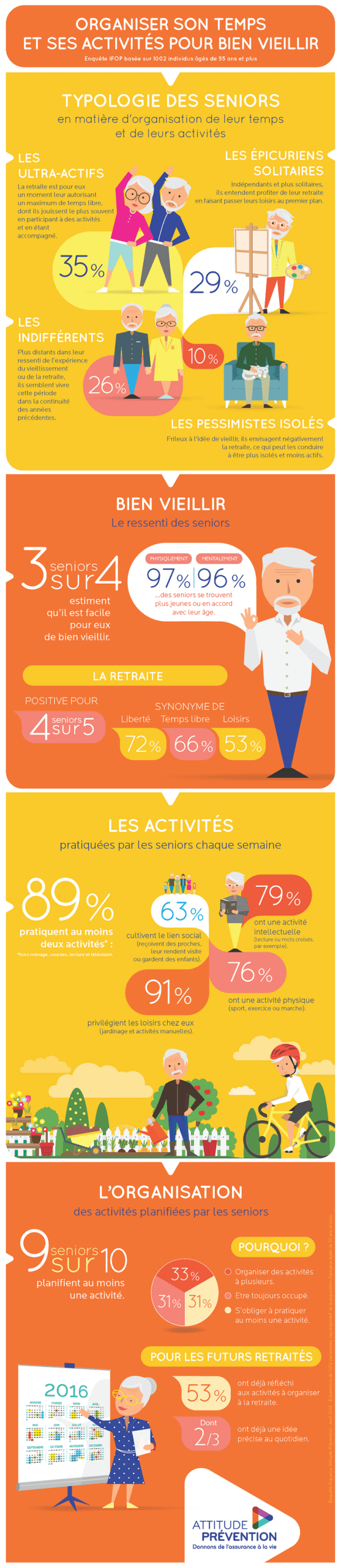 Ils ont également réalisé une infographie sur les typologies de seniors, le ressenti des seniors quant au sujet du « bien vieillir » et leurs activités, que nous relayons ci-dessous.