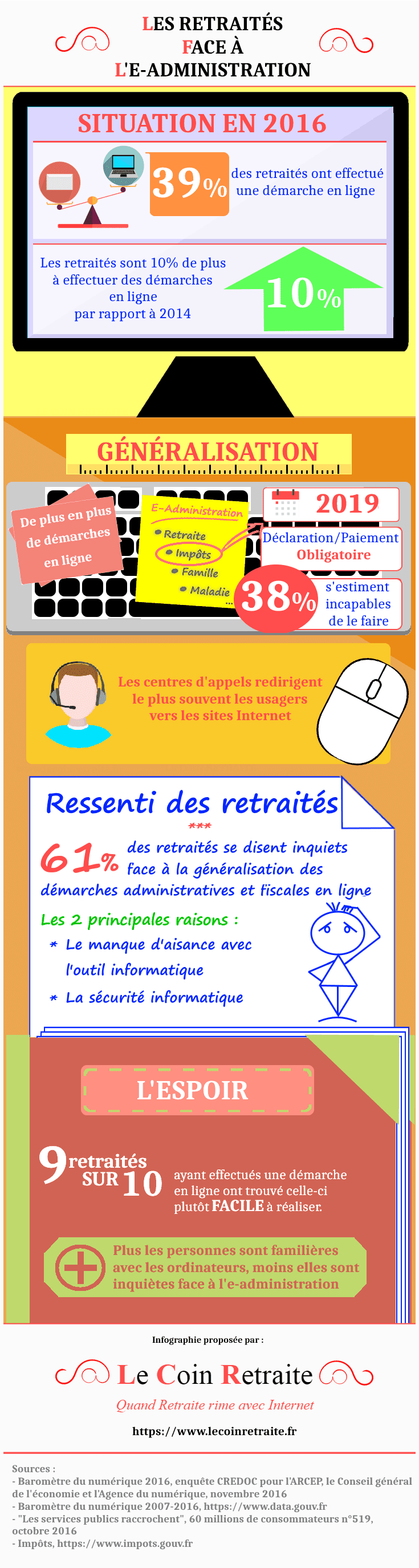 Le Coin Retraite, un site Internet qui a pour vocation d’accompagner les retraités dans la découverte des nouvelles technologies, vient de publier une infographie sur la thématique des retraités face à l’e-administration.