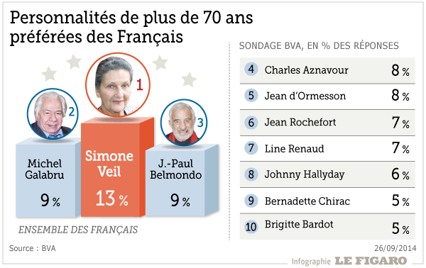 Suite à la publication d’un Sondage mené par Les Petits frères des Pauvres et BVA sur les personnalités préférées des français, le journal Le Figaro a diffusé une infographie reprenant les résultats du sondage.