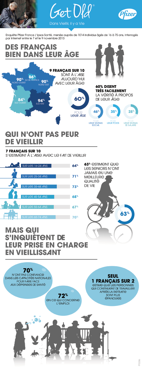 Le laboratoire Pfizer France a lancé le programme « Get Old® – Dans Vieillir, il y a Vie® » voici quelques semaines, publiant dans ce cadre les résultats d’une enquête, ainsi qu’une infographie sur la perception de l’âge.