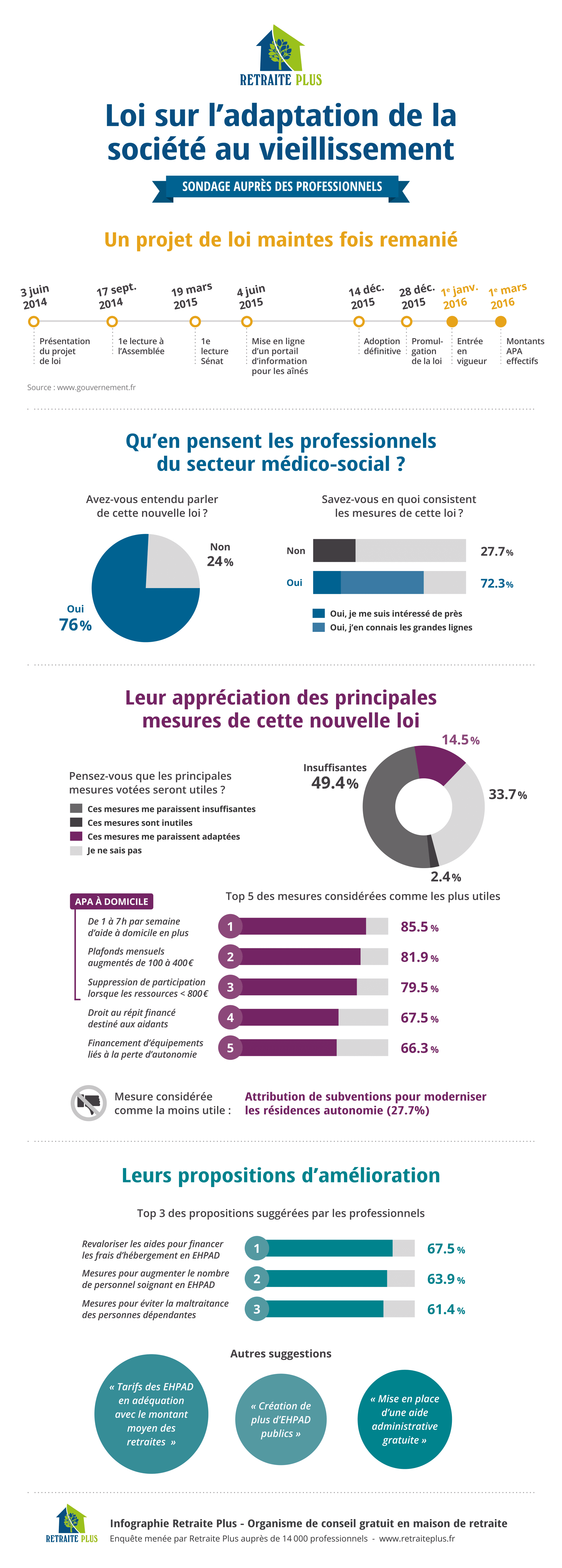 Selon Retraite plus « Les résultats de ce sondage et les avis recueillis illustrent bien les défis, les enjeux et les limites de ce brûlant sujet de société qu’est l’adaptation de la société au vieillissement. »