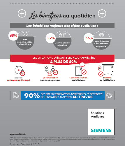 La Journée Nationale de l’audition, qui se tiendra le 9 mars 2017, est l’occasion de communiquer autour de l’audition et des aides auditives disponibles sur le marché. Signia a à ce titre réalisé une infographie pour comprendre en quelques chiffres les bénéfices des aides auditives, le rôle de l’audioprothésiste ou encore les situations d’écoute les plus appréciées.